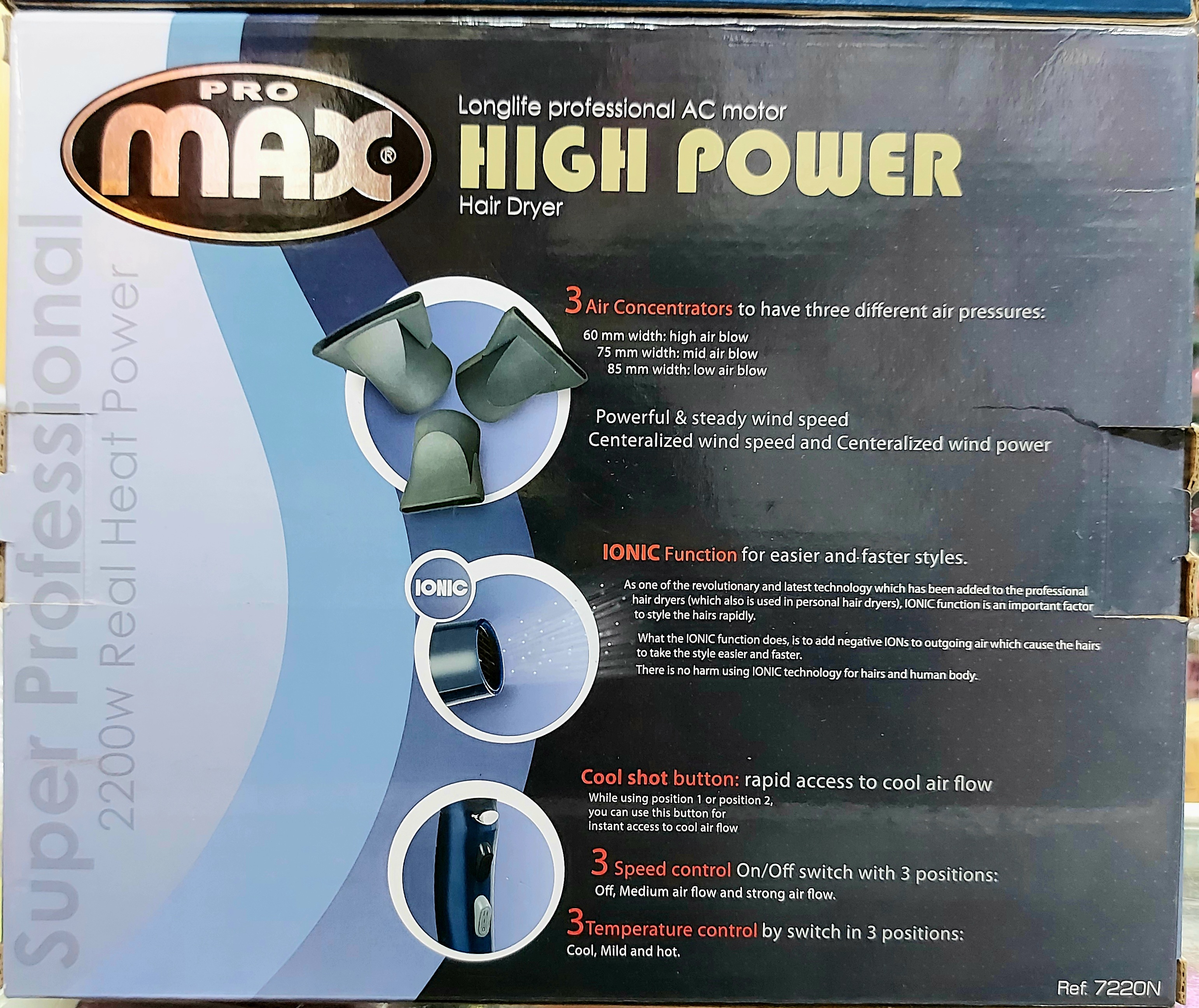 سشوار حرفهای پرومکس، مدل ۷۲۲۰، قدرت ۲۲۰۰ وات
