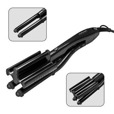 انبر موج 5 کاره پرومکس PROMAX مدل 4532 با توان 105 وات مجهز به دو سری مجزا برای حالت دادن به مو می باشد. میله فلزی دو قلو به قطرهای 19 میلی متر که مناسب برای ایجاد فرهای ریز می باشد. سری انبر موج دو طرفه که با یک طرف آن می توان موج های ریز ایجاد نمود و سمت دیگر آن نیز مناسب ایجاد موج های درشت بر روی مو می باشد. بر روی بدنه دکمه push مشاهده می شود که با فشار دادن آن می توان انبر موج را از بدنه جدا کرد. در قسمت پشت بدنه دکمه قفل قرار دارد که جهت بستن و باز کردن دسته ها می توان آن را به سمت راست یا چپ کشید. این دستگاه از تکنولوژی سرامیکی بهره می برد که در آن به کار گیری سنگ های سرامیکی کوچک که دارای قابلیت خود تنظیمی دما می باشند، موجب گرم شدن سریع میله ها، بازدهی بالا در تولید حرارت و همچنین ماندگاری بیشتر گرما در میله ها می گردد. با قرا دادن دکمه روشن/ خاموش در وضعیت روشن، چراغ نشانگر دستگاه به رنگ قرمز روشن می شود. انبر موج پرومکس مجهز به انتخابگر دما می باشد که با چرخاندن آن می توان دمای میله ها کم و زیاد کرد.